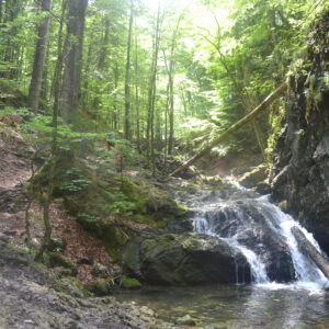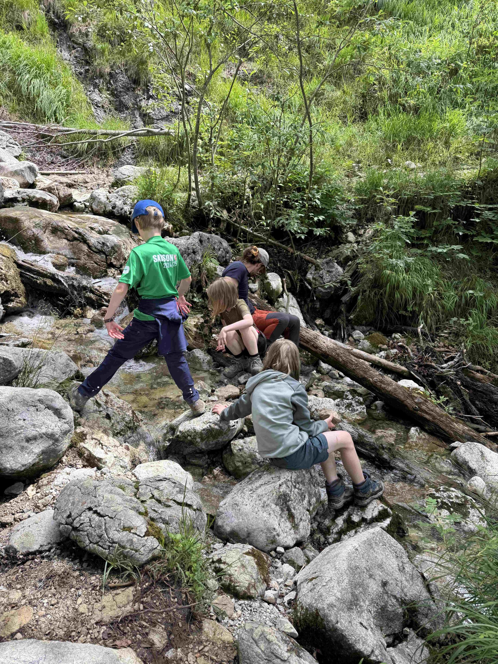 Tag 7: Für den Abstieg haben wir viel Zeit – der Zug nach Norddeutschland fährt erst am Nachmittag. So können wir uns auf dem Weg ins Tal noch ausgiebig im Dürnbach erfrischen, der lange Zeit unseren Weg begleitet. Da sich der Bahnhof in Schliersee direkt neben dem Badestrand befindet, hüpfen wir zum Abschluss unserer Hüttentour noch einmal in das hier nicht ganz so kalte Wasser.